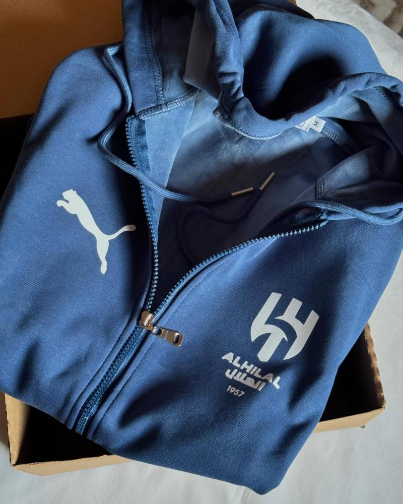 لمحبي نادي الهلال نقدم لكم جاكيت الهلال بتصميم فريد ومميز تم تصميمة بتقنية ال DTF التي تجعل الطباعة بجودة عالية وملمس بارز